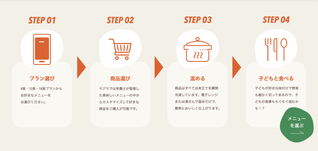 モグモのメニューはどのように選べますか?