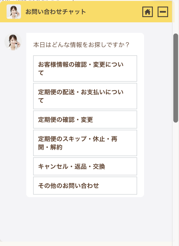 チャットは「定期便のスキップ・休止・解約」から選択する